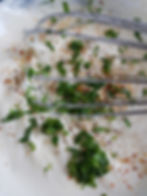 Assaisonner (sel, poivre, piment d'Espelette) et ajouter les feuilles de basilic finement émincées et la gousse d'ail râpé.