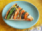 Disposer les tagliatelles de légumes en cercles concentriques en partant du bord de la tarte et en alternant les carottes et les courgettes. Bien serrer les rubans entre eux en les enfonçant dans la couche de fromage.